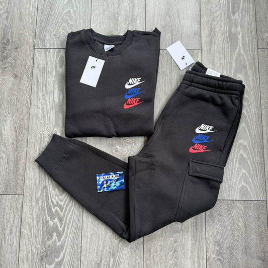 Nike Multi Logo Fleece Cargo Tracksuit Black