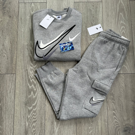 Nike Multi Swoosh Fleece Cargo Tracksuit Grey